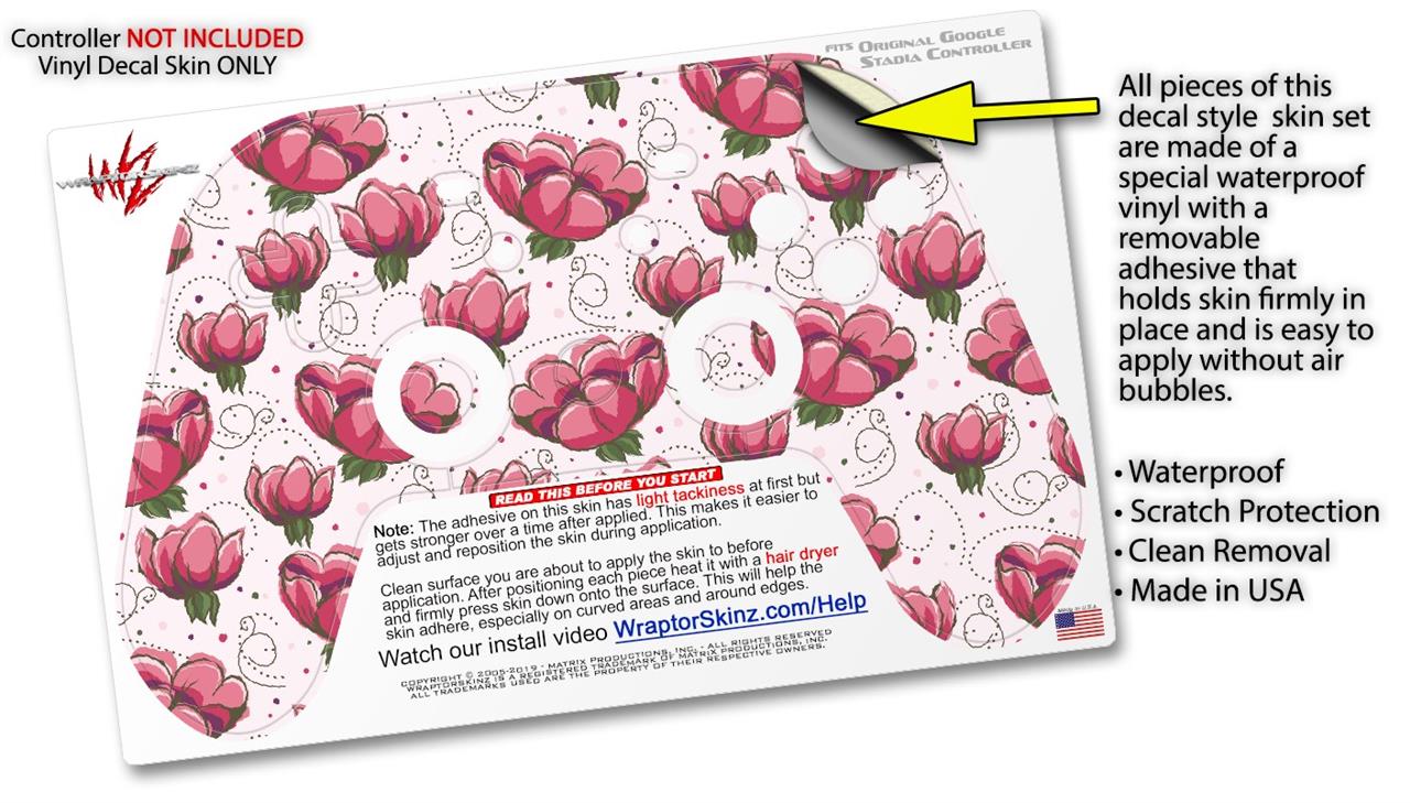 Skin Decal Wrap works with Original Google Stadia Controller Flowers Pattern 16 Skin Only CONTROLLER NOT INCLUDED