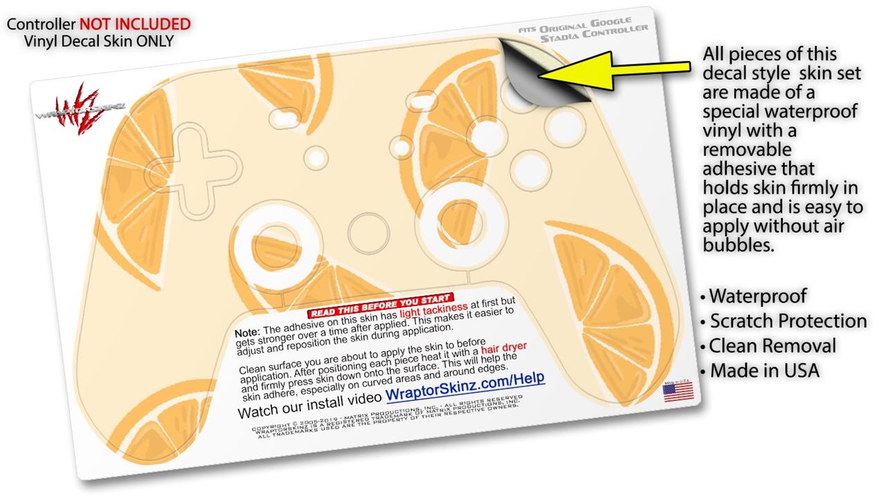 Skin Decal Wrap works with Original Google Stadia Controller Oranges Orange Skin Only CONTROLLER NOT INCLUDED