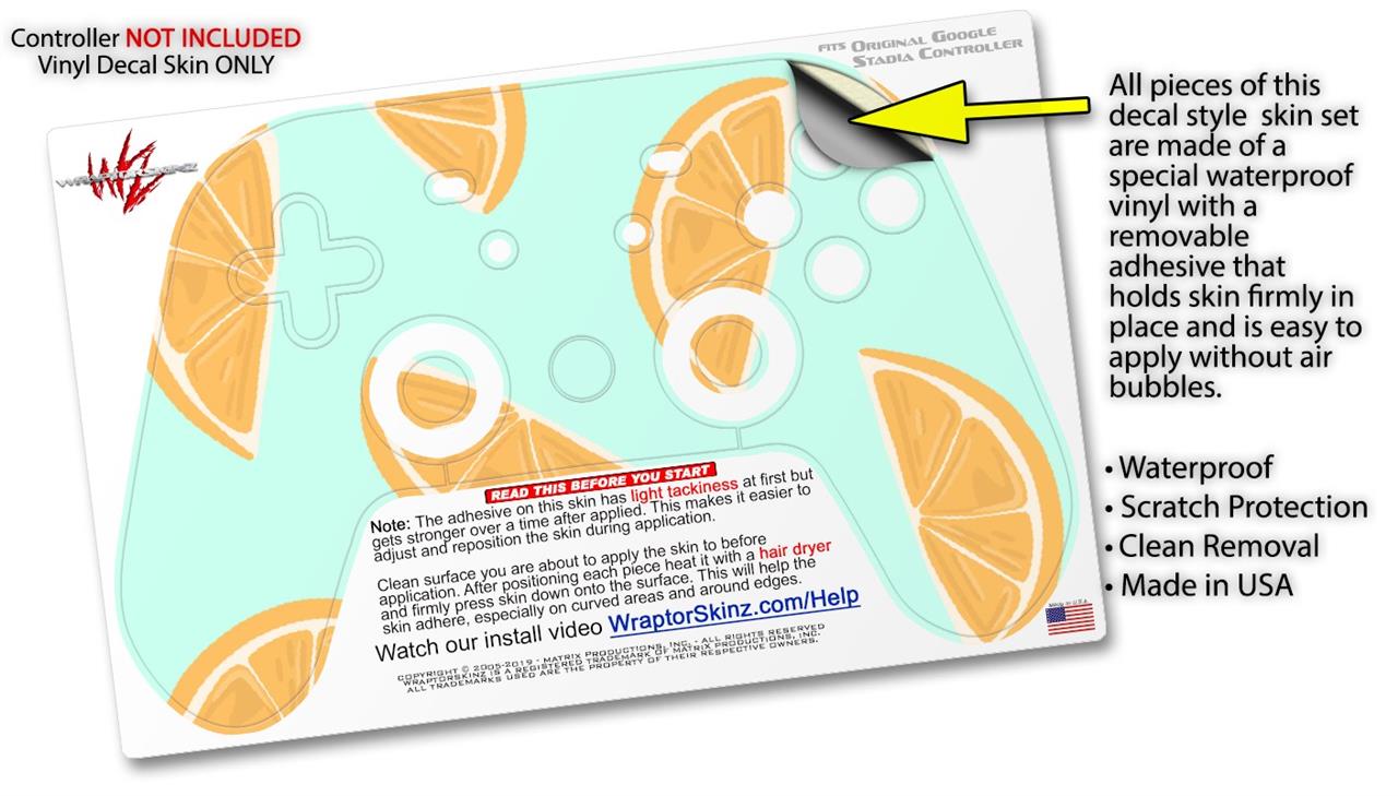Skin Decal Wrap works with Original Google Stadia Controller Oranges Blue Skin Only CONTROLLER NOT INCLUDED