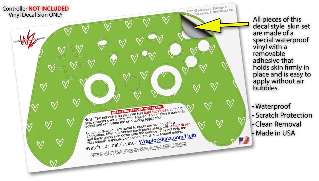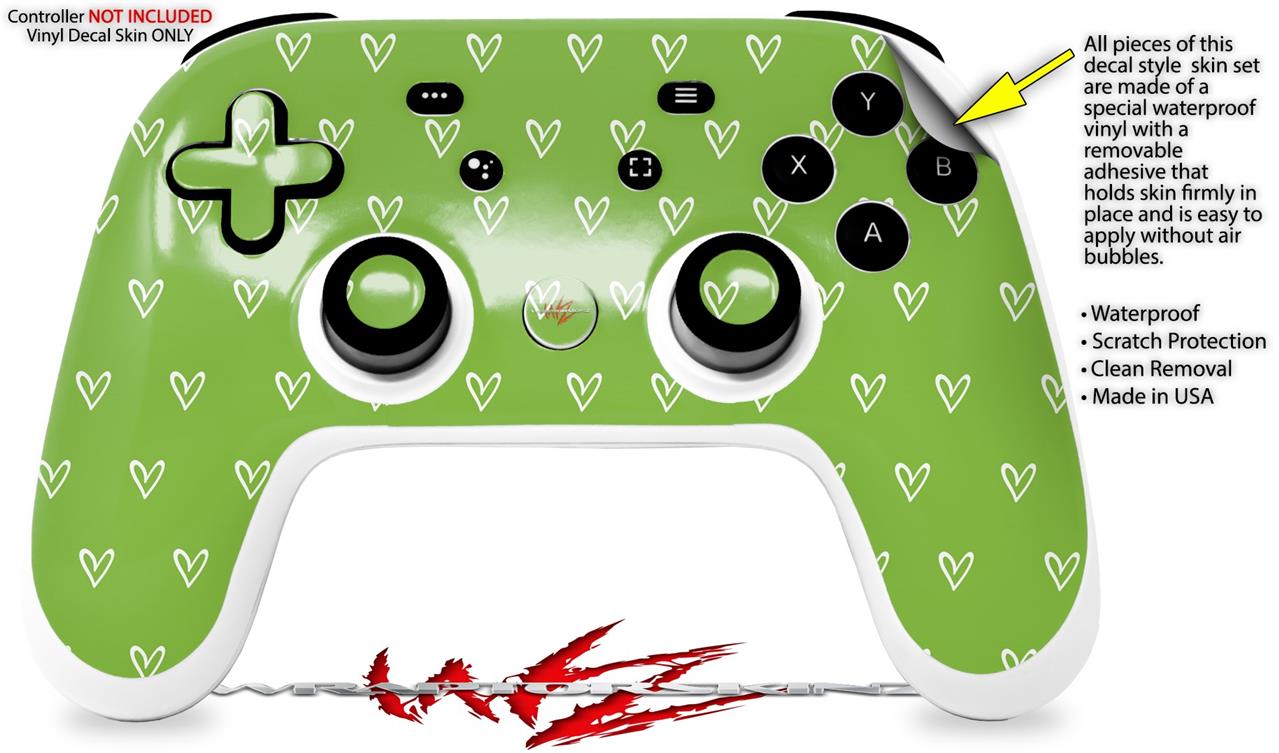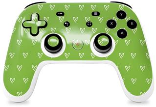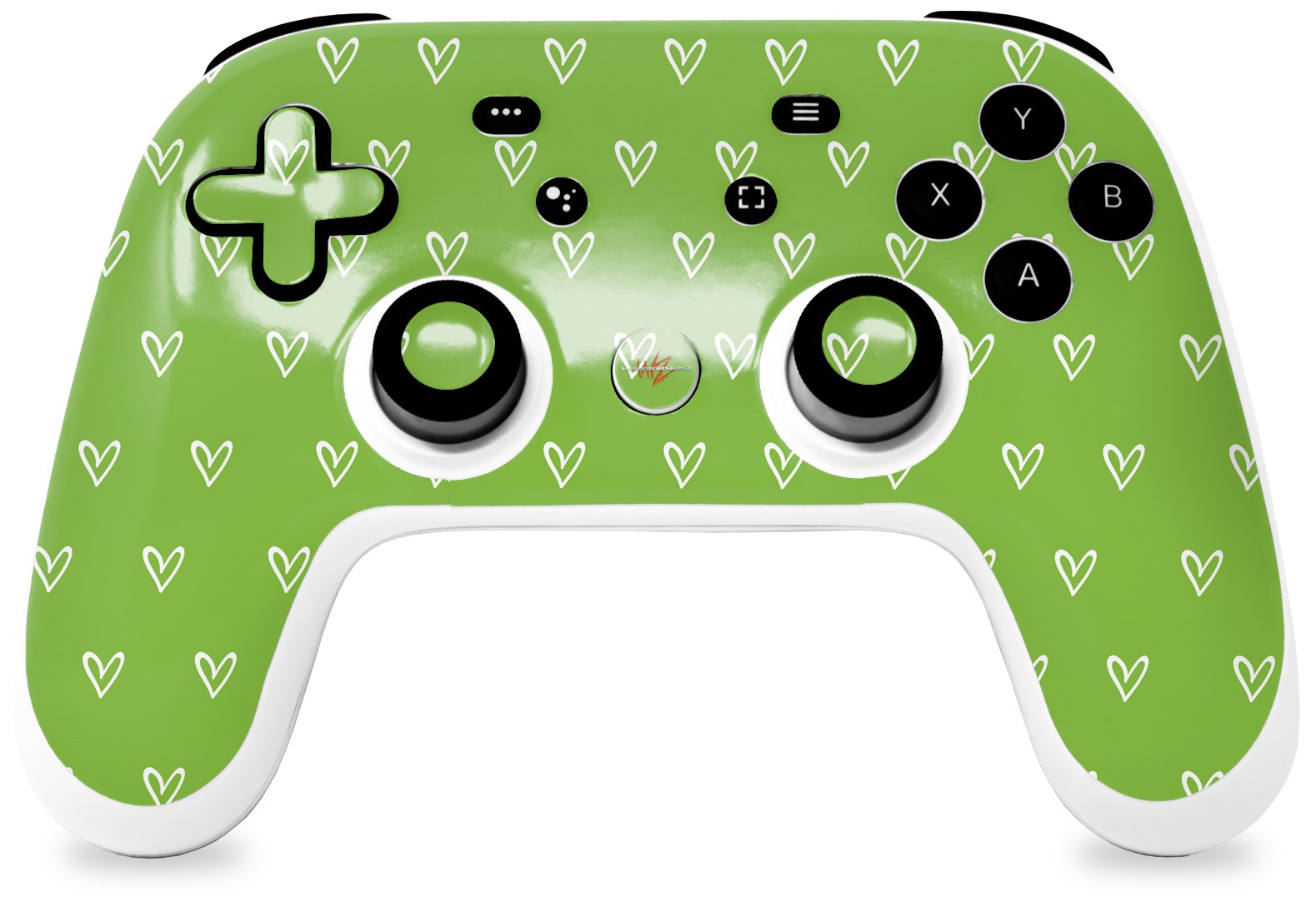 Skin Decal Wrap works with Original Google Stadia Controller Hearts Green On White Skin Only CONTROLLER NOT INCLUDED