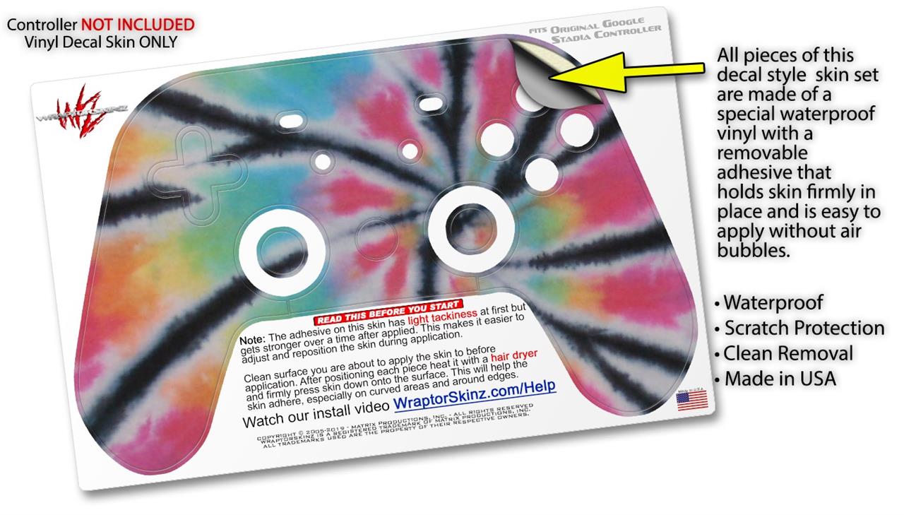 Skin Decal Wrap works with Original Google Stadia Controller Tie Dye Swirl 109 Skin Only CONTROLLER NOT INCLUDED