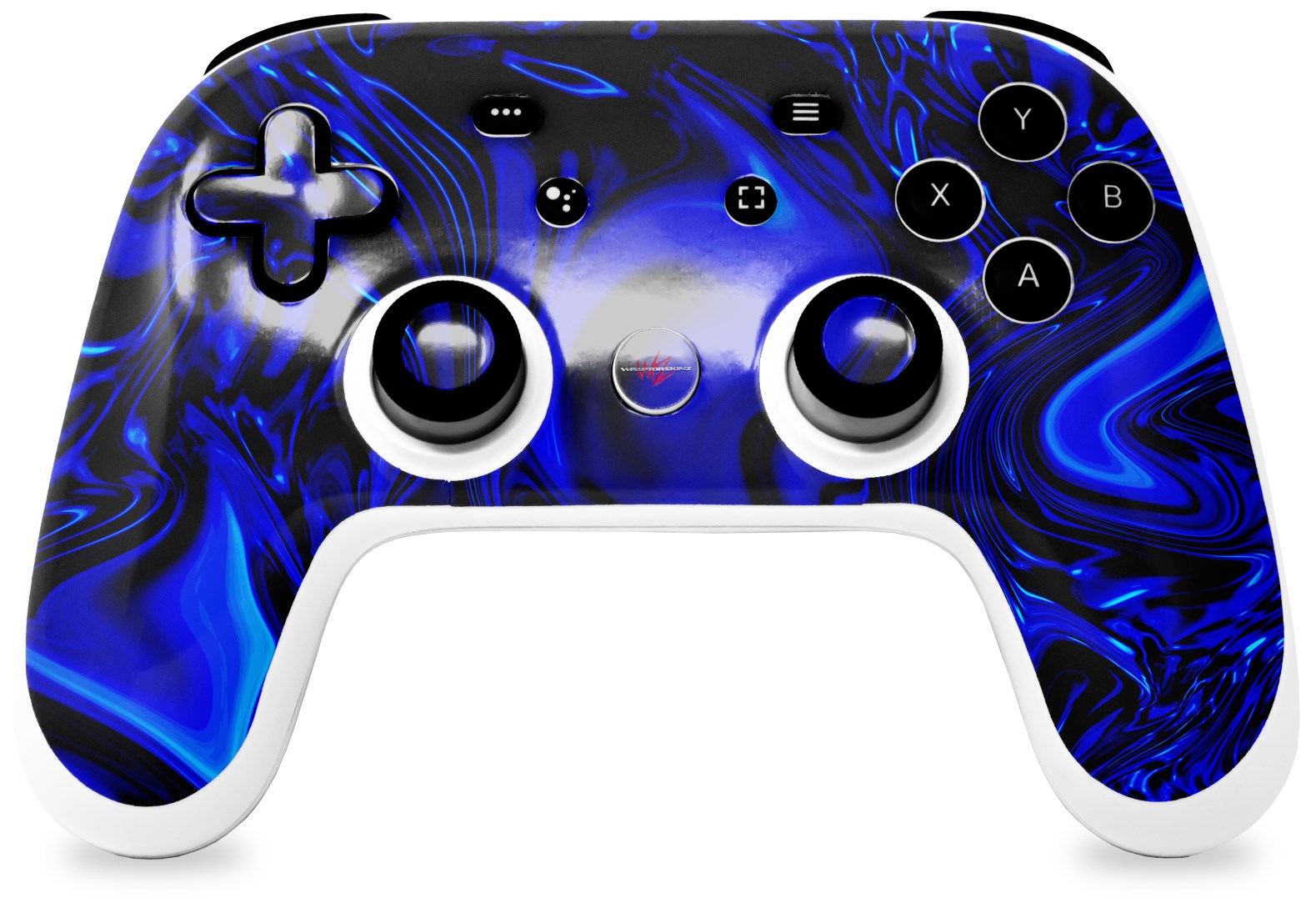 Skin Decal Wrap works with Original Google Stadia Controller Liquid Metal Chrome Royal Blue Skin Only CONTROLLER NOT INCLUDED