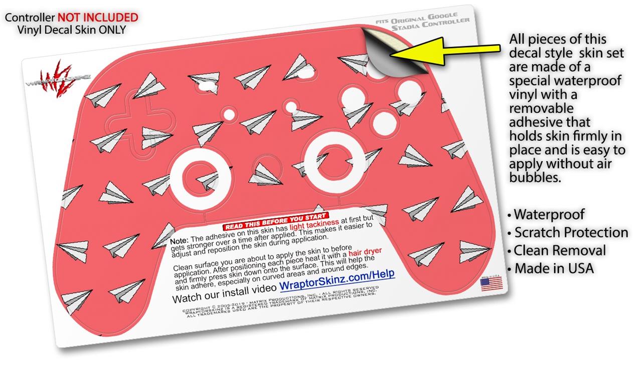 Skin Decal Wrap works with Original Google Stadia Controller Paper Planes Coral Skin Only CONTROLLER NOT INCLUDED