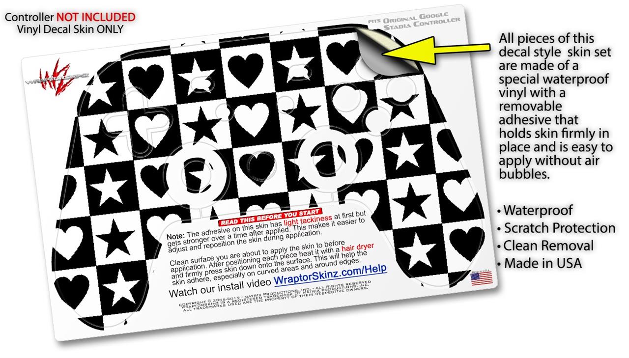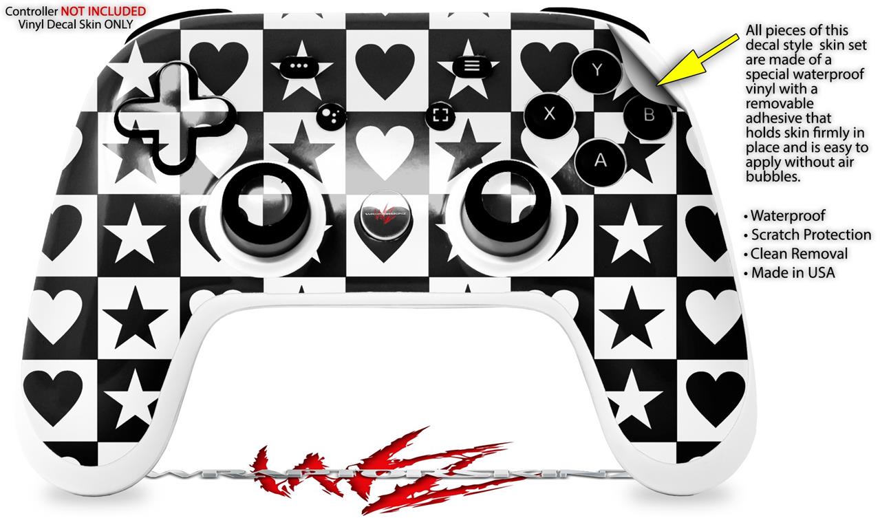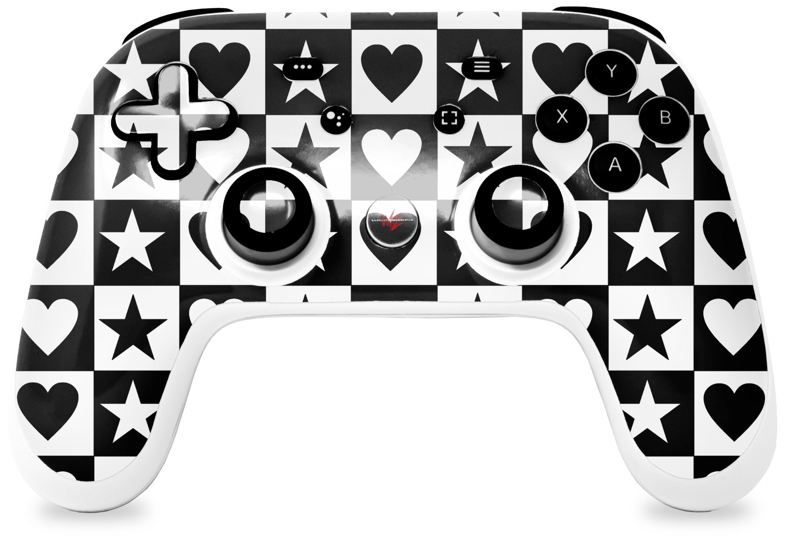 Skin Decal Wrap works with Original Google Stadia Controller Hearts And Stars Black and White Skin Only CONTROLLER NOT INCLUDED