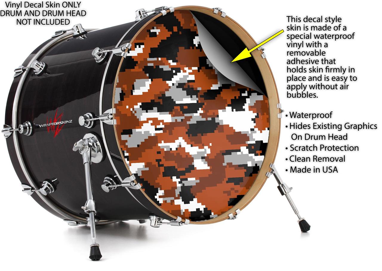 Vinyl Decal Skin Wrap for 20" Bass Kick Drum Head WraptorCamo Digital Camo Burnt Orange - DRUM HEAD NOT INCLUDED