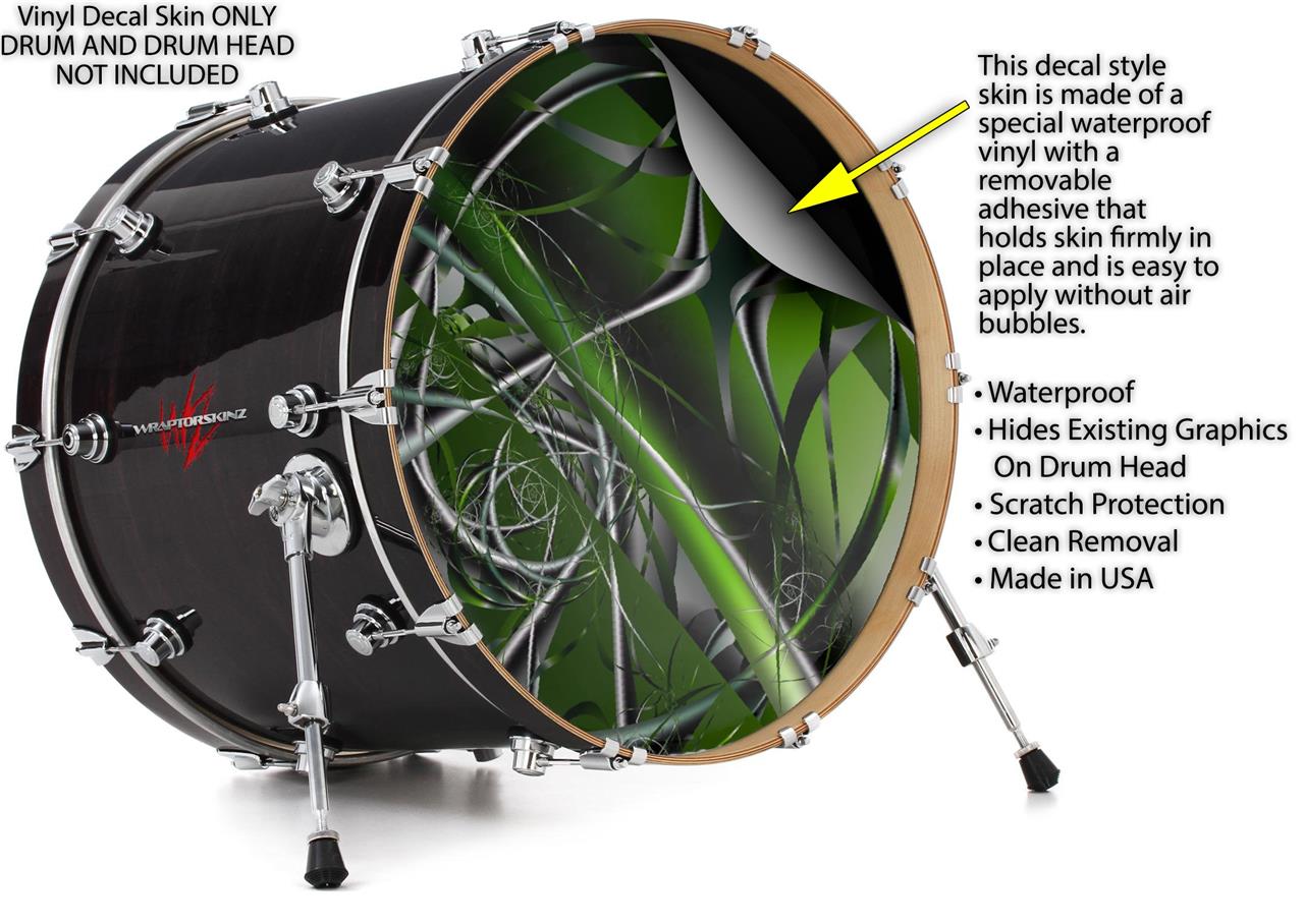 This design also available in other sizes. WraptorSkinz® skin wraps compatible with most kick drum heads. Printed using superb photo quality designs and vibrant colors printed with special fade resistant inks that last even in direct sun for years. WraptorSkinz are a composite three layer commercial grade materials vinyl. The bottom layer is a air release, grey block out removable adhesive that hides existing graphics on the drum head and is easily applied without air bubbles. The middle layer is a flexible vinyl printed with UV protected, fade resistant inks that deliver superb photo quality designs in vibrant colors. Finally, we bond a professional grade laminate over the entire skin adding a glossy protective finish.