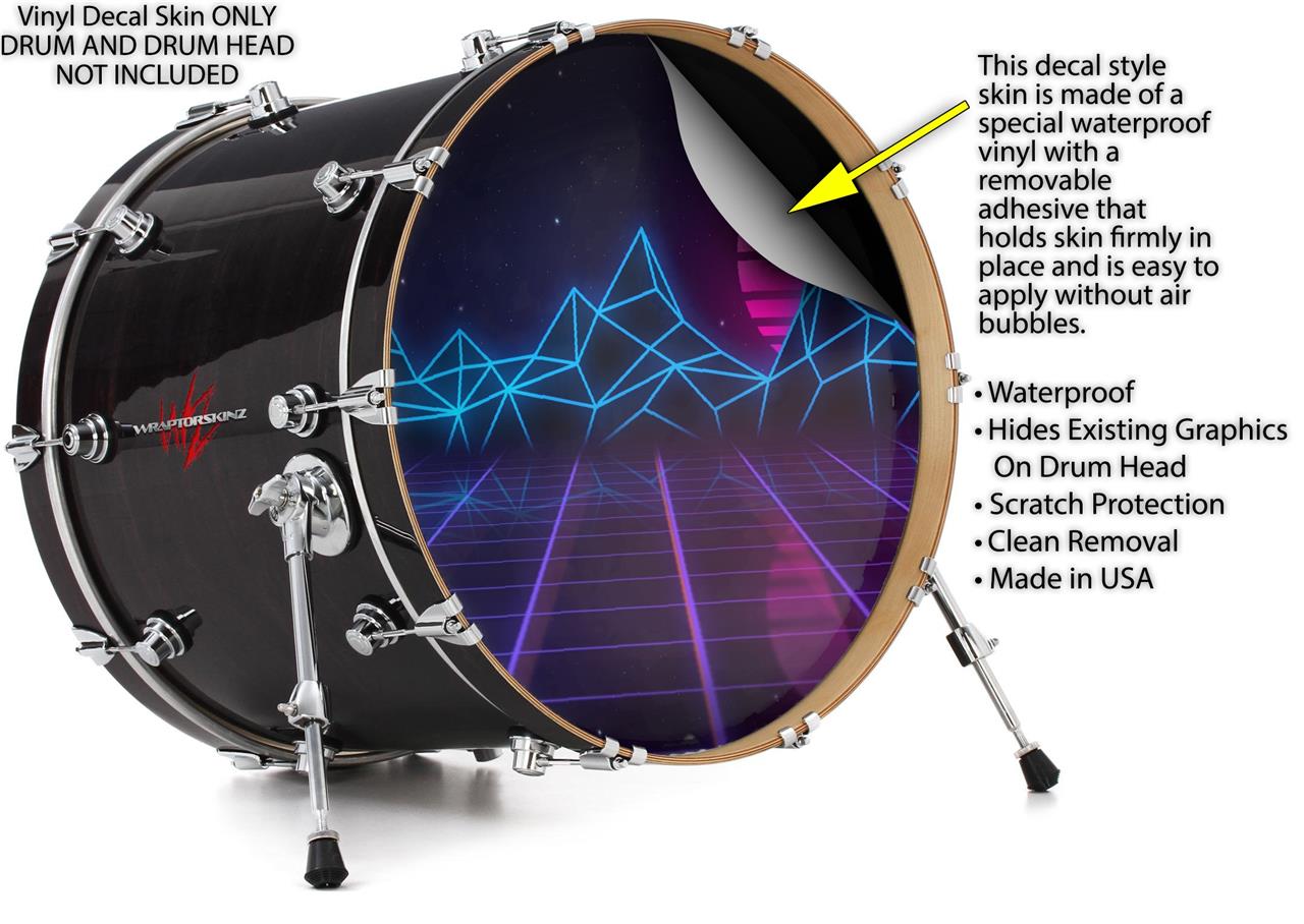 Decal Skin works with most 24" Bass Kick Drum Heads Synth Mountains - DRUM HEAD NOT INCLUDED