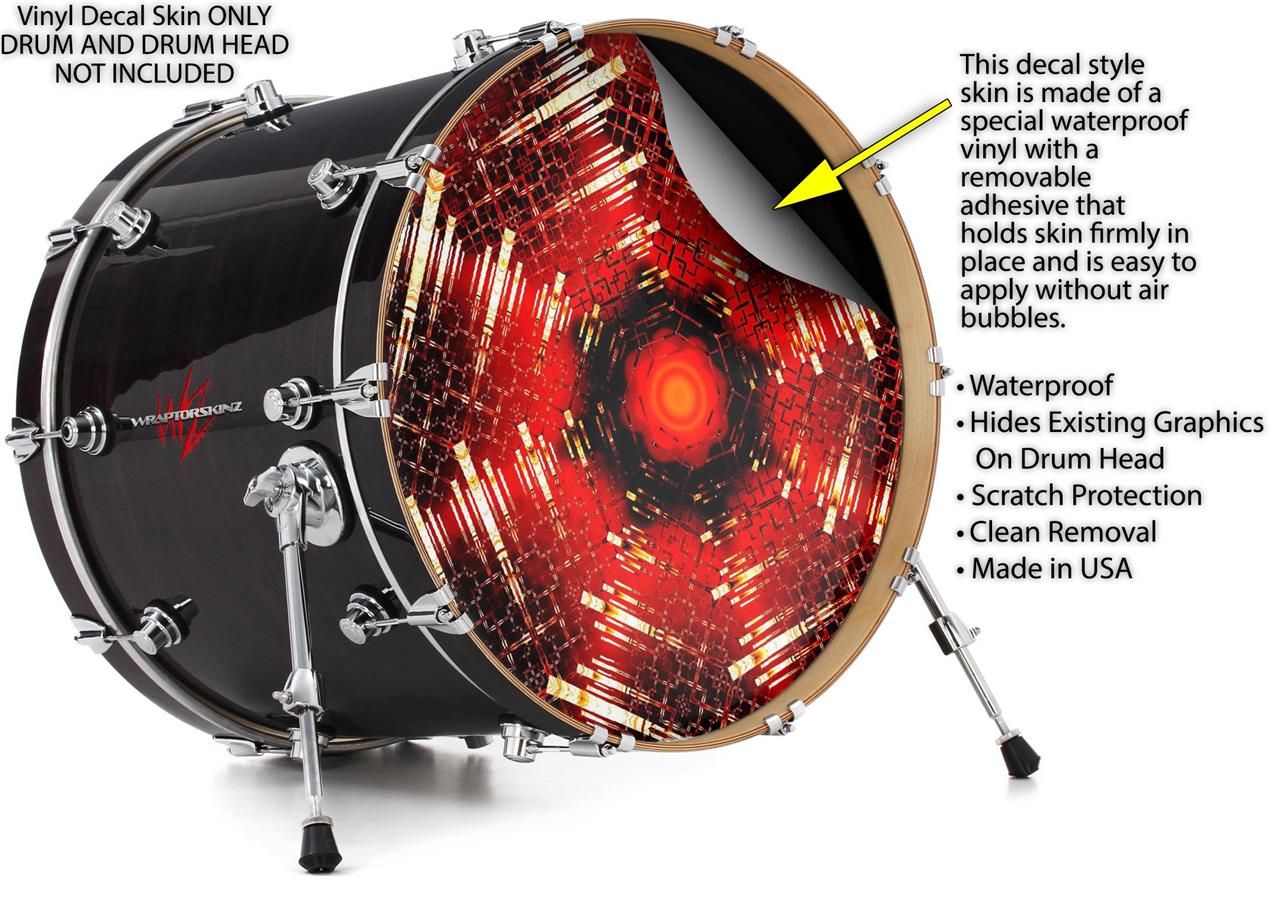 This design also available in other sizes. WraptorSkinz® skin wraps compatible with most kick drum heads. Printed using superb photo quality designs and vibrant colors printed with special fade resistant inks that last even in direct sun for years. WraptorSkinz are a composite three layer commercial grade materials vinyl. The bottom layer is a air release, grey block out removable adhesive that hides existing graphics on the drum head and is easily applied without air bubbles. The middle layer is a flexible vinyl printed with UV protected, fade resistant inks that deliver superb photo quality designs in vibrant colors. Finally, we bond a professional grade laminate over the entire skin adding a glossy protective finish.