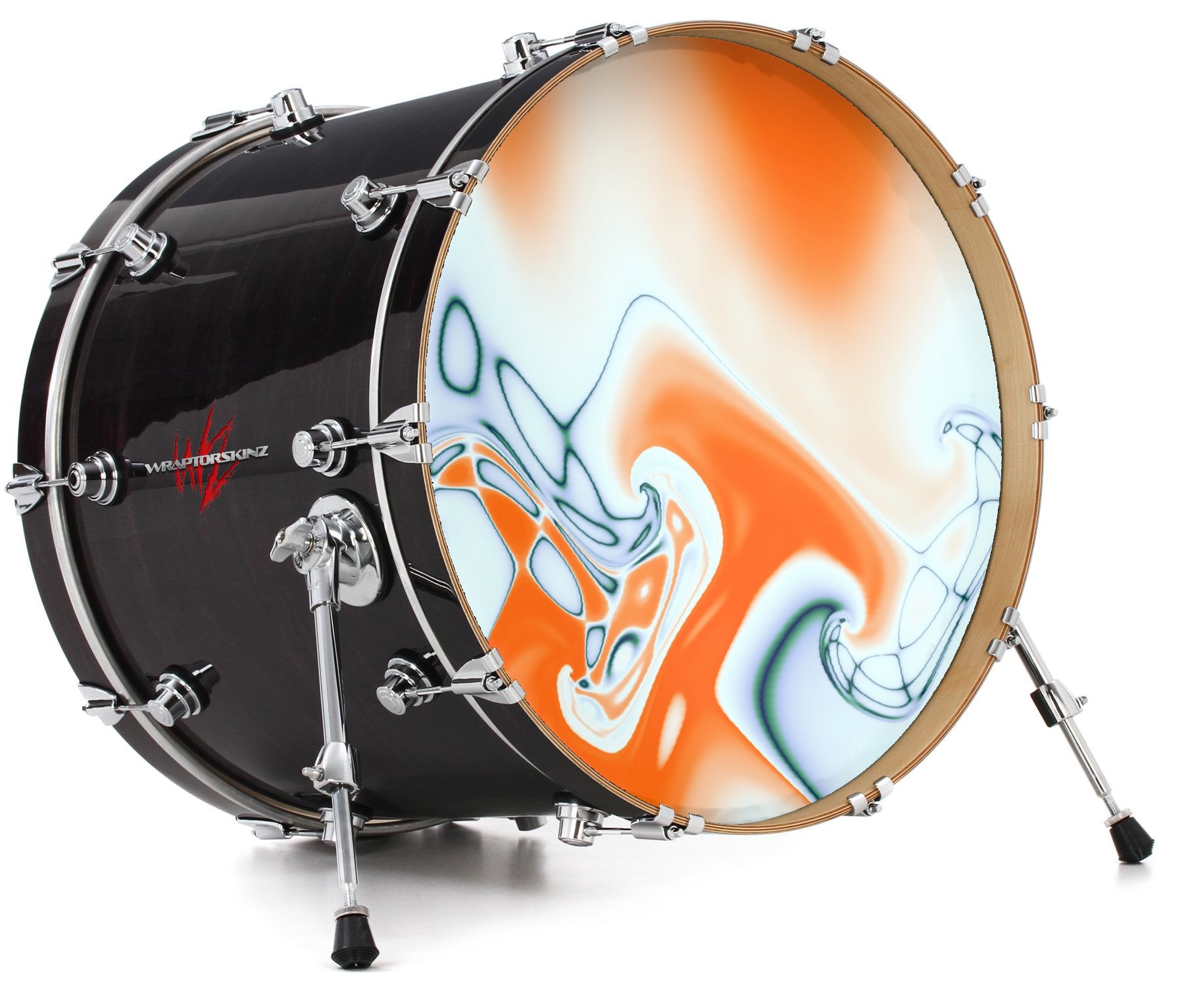 This design also available in other sizes. WraptorSkinz® skin wraps compatible with most kick drum heads. Printed using superb photo quality designs and vibrant colors printed with special fade resistant inks that last even in direct sun for years. WraptorSkinz are a composite three layer commercial grade materials vinyl. The bottom layer is a air release, grey block out removable adhesive that hides existing graphics on the drum head and is easily applied without air bubbles. The middle layer is a flexible vinyl printed with UV protected, fade resistant inks that deliver superb photo quality designs in vibrant colors. Finally, we bond a professional grade laminate over the entire skin adding a glossy protective finish.
