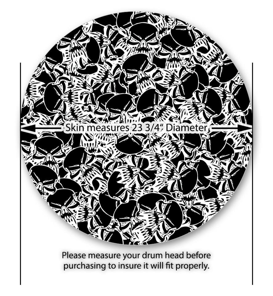 Decal Skin works with most 24" Bass Kick Drum Heads Scattered Skulls Black - DRUM HEAD NOT INCLUDED