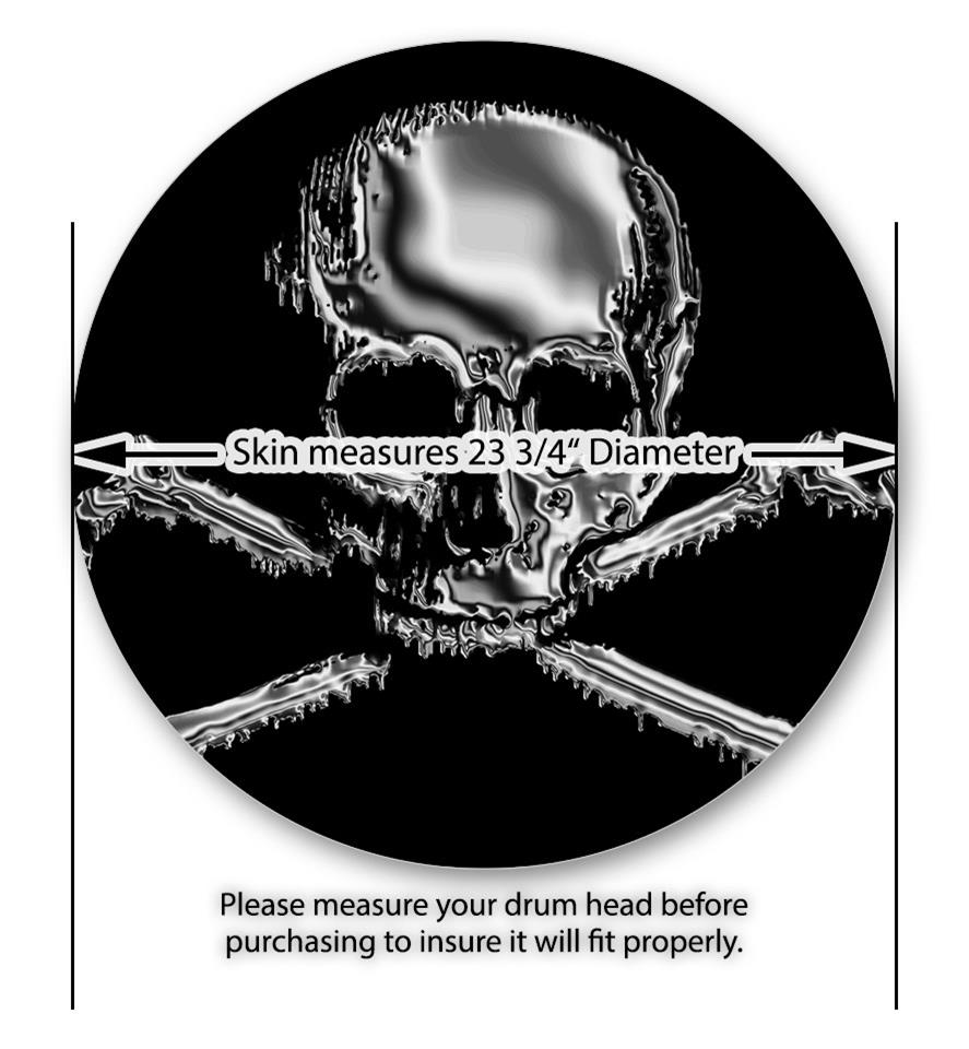 Decal Skin works with most 24" Bass Kick Drum Heads Chrome Skull on Black - DRUM HEAD NOT INCLUDED