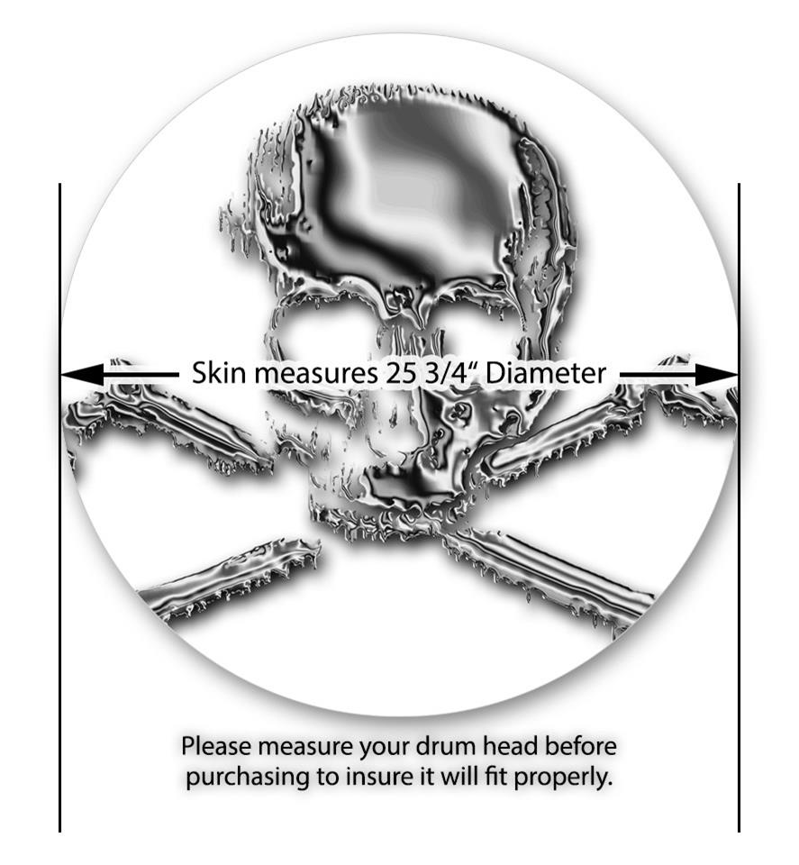 Decal Skin works with most 26" Bass Kick Drum Heads Chrome Skull on White - DRUM HEAD NOT INCLUDED