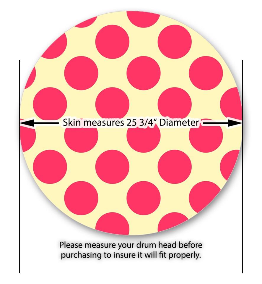 Decal Skin works with most 26" Bass Kick Drum Heads Kearas Polka Dots Pink On Cream - DRUM HEAD NOT INCLUDED