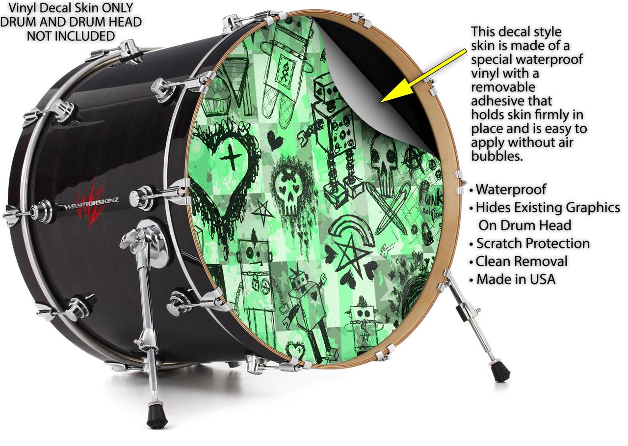 Decal Skin works with most 26" Bass Kick Drum Heads Scene Kid Sketches Green - DRUM HEAD NOT INCLUDED