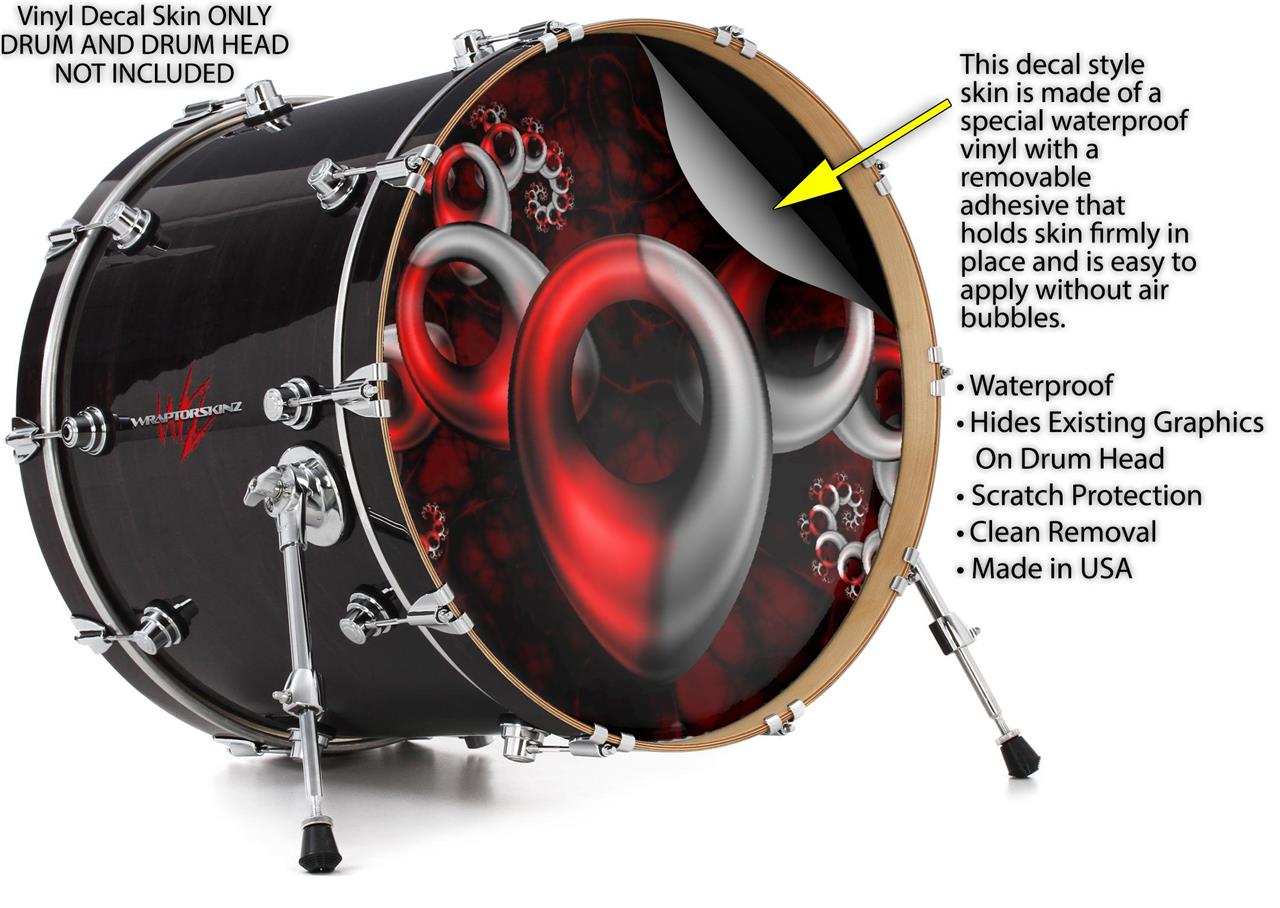 This design also available in other sizes. WraptorSkinz® skin wraps compatible with most kick drum heads. Printed using superb photo quality designs and vibrant colors printed with special fade resistant inks that last even in direct sun for years. WraptorSkinz are a composite three layer commercial grade materials vinyl. The bottom layer is a air release, grey block out removable adhesive that hides existing graphics on the drum head and is easily applied without air bubbles. The middle layer is a flexible vinyl printed with UV protected, fade resistant inks that deliver superb photo quality designs in vibrant colors. Finally, we bond a professional grade laminate over the entire skin adding a glossy protective finish.