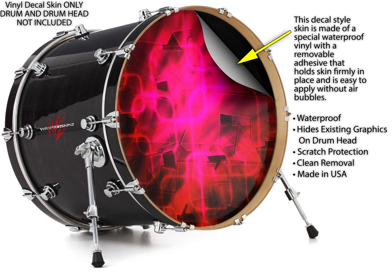 Decal Skin works with most 26" Bass Kick Drum Heads Cubic Shards Red - DRUM HEAD NOT INCLUDED