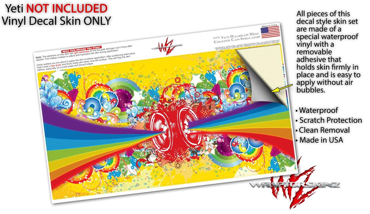 WraptorSkinz Skin Decal Wrap compatible with Yeti 16oz Tall Colster Can Cooler Insulator Rainbow Music (COOLER NOT INCLUDED)