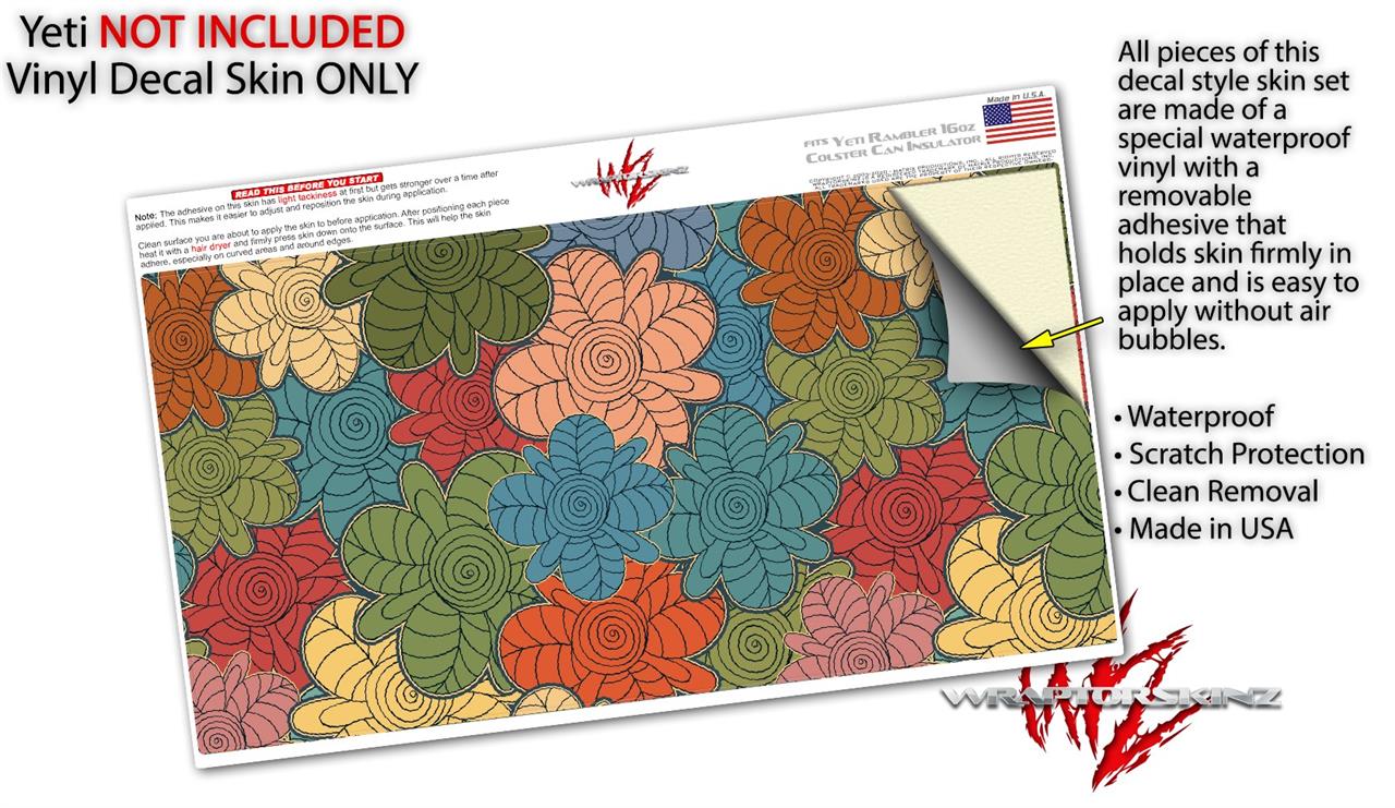 WraptorSkinz Skin Decal Wrap compatible with Yeti 16oz Tall Colster Can Cooler Insulator Flowers Pattern 01 (COOLER NOT INCLUDED)