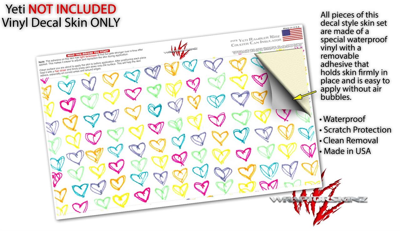 WraptorSkinz Skin Decal Wrap compatible with Yeti 16oz Tall Colster Can Cooler Insulator Kearas Hearts White (COOLER NOT INCLUDED)