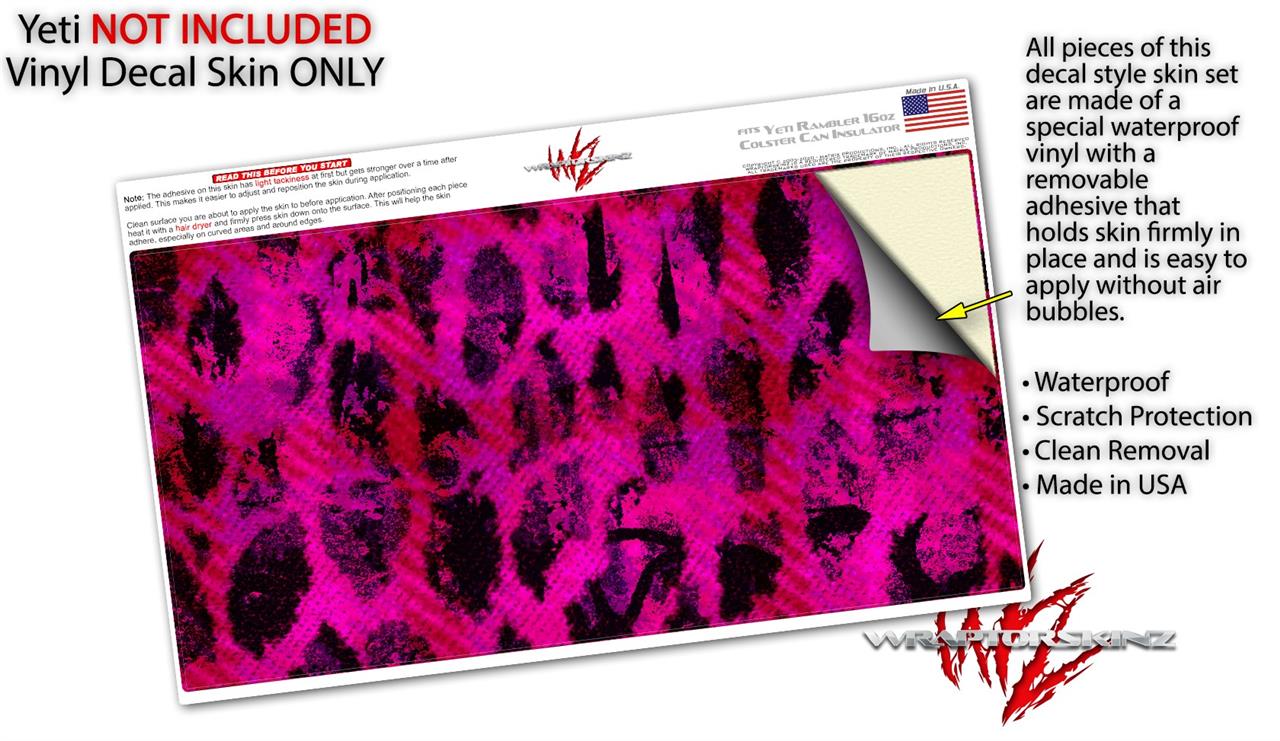 WraptorSkinz Skin Decal Wrap compatible with Yeti 16oz Tall Colster Can Cooler Insulator Pink Distressed Leopard (COOLER NOT INCLUDED)