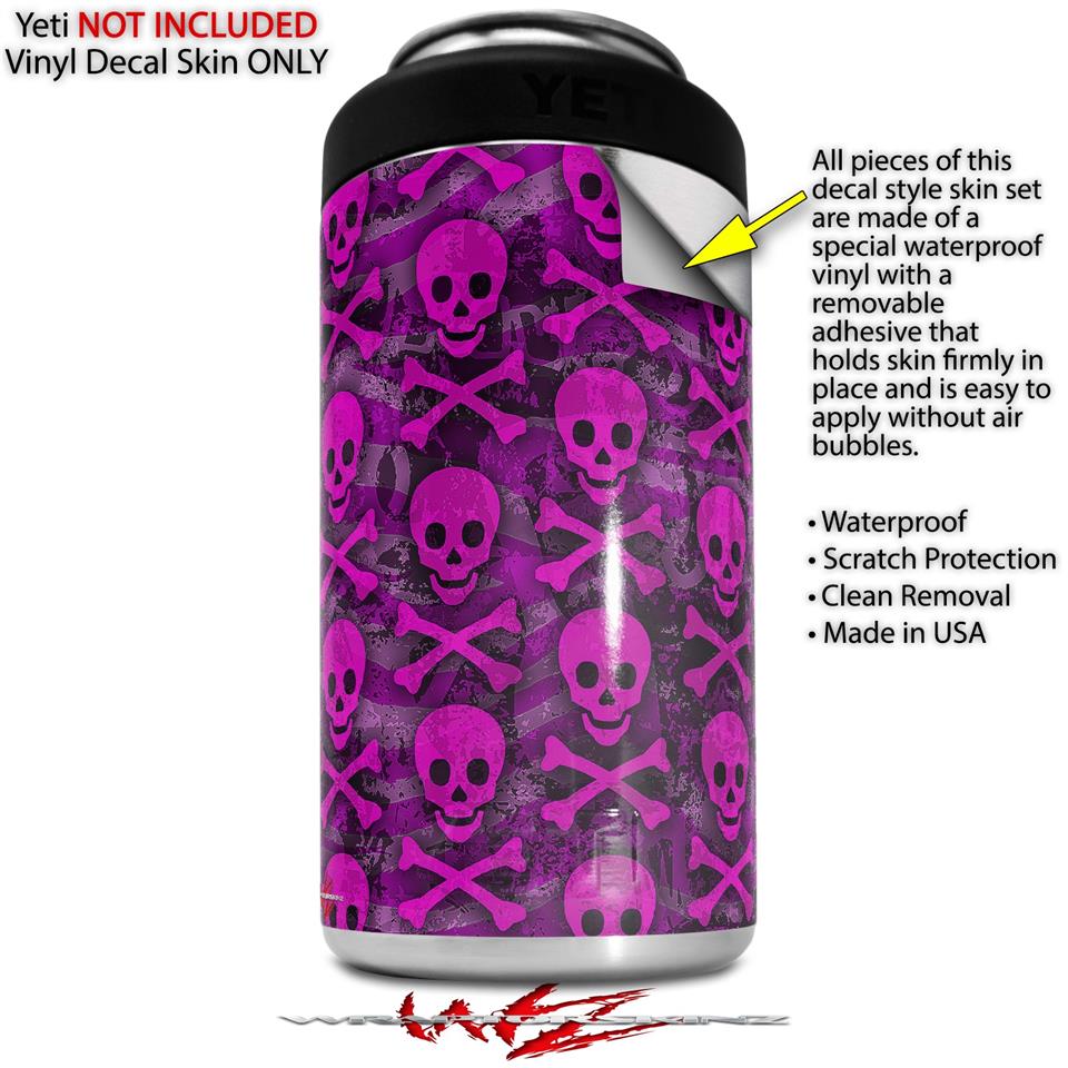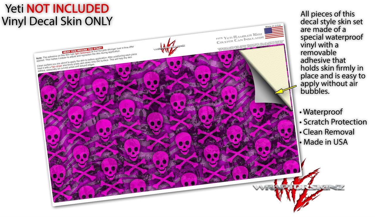 WraptorSkinz Skin Decal Wrap compatible with Yeti 16oz Tall Colster Can Cooler Insulator Pink Skull Bones (COOLER NOT INCLUDED)