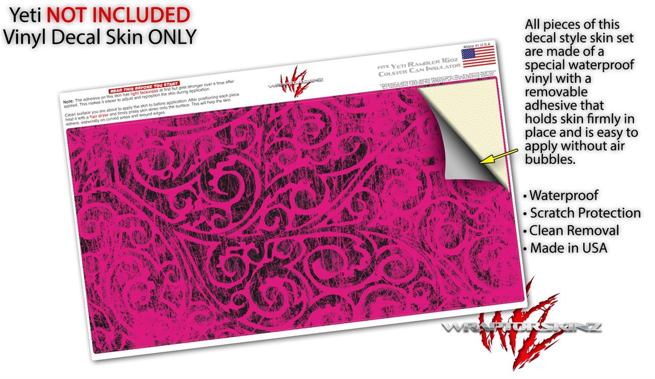 WraptorSkinz Skin Decal Wrap compatible with Yeti 16oz Tall Colster Can Cooler Insulator Folder Doodles Fuchsia (COOLER NOT INCLUDED)
