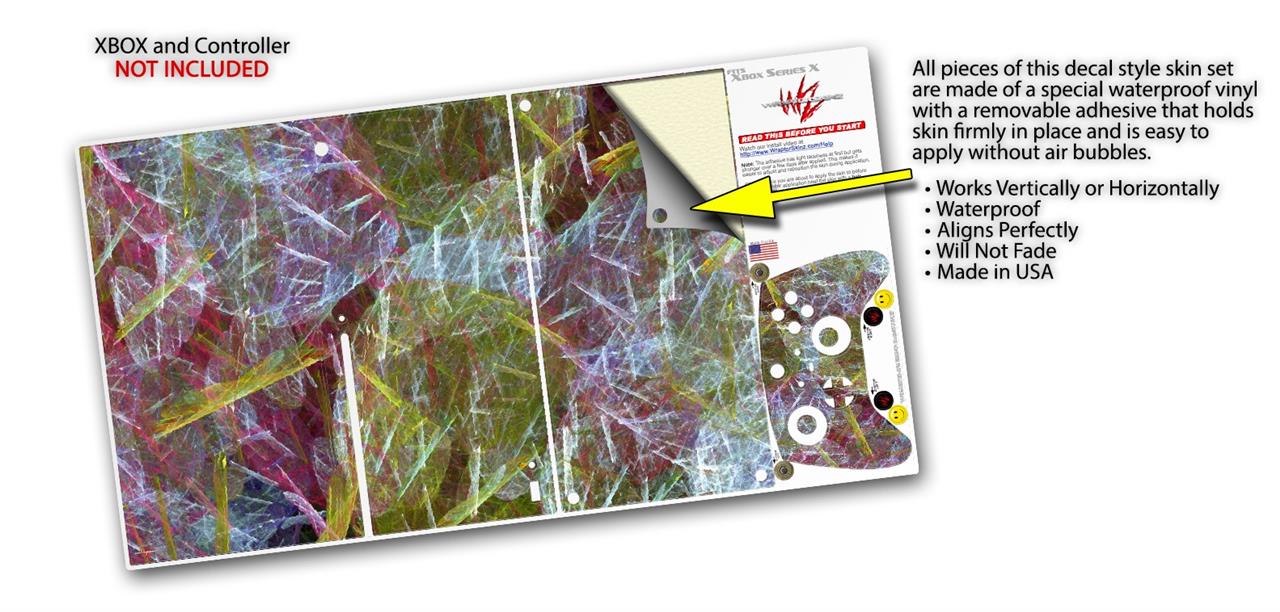 WraptorSkinz® skin wraps for the XBOX Series X gaming console and controller reelase November 2020 are printed using superb photo quality designs and vibrant colors printed with special fade resistant inks that last even in direct sun for years. WraptorSkinz are a composite of two layers of commercial grade materials. The bottom layer is a soft, flexible vinyl with a special removable adhesive that is easily positioned, applied without air bubbles. Next we print the bottom layer with UV protected, fade resistant inks that deliver superb photo quality designs in vibrant colors. Last, we bond a professional grade laminate over the entire skin adding a glossy protective finish. This product is not affiliated with or endorsed by Microsoft or the XBOX brand.