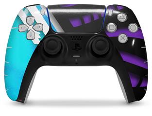 WraptorSkinz Skin Wrap compatible with the Sony PS5 DualSense Controller Black Waves Neon Teal Purple (CONTROLLER NOT INCLUDED)