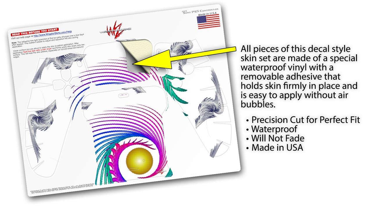 WraptorSkinz® skin wraps for the Sony Playstation 5 controller are printed using superb photo quality designs and vibrant colors printed with special fade resistant inks that last even in direct sun for years. WraptorSkinz are a composite of two layers of commercial grade materials. The bottom layer is a soft, flexible vinyl with a special removable adhesive that is easily positioned, applied without air bubbles. Next we print the bottom layer with UV protected, fade resistant inks that deliver superb photo quality designs in vibrant colors. Last, we bond a professional grade laminate over the entire skin adding a glossy protective finish. This product is not affiliated with or endorsed by Sony or the Playstation brand.