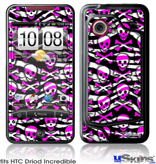 HTC Droid Incredible Skin - Zebra Pink Skulls