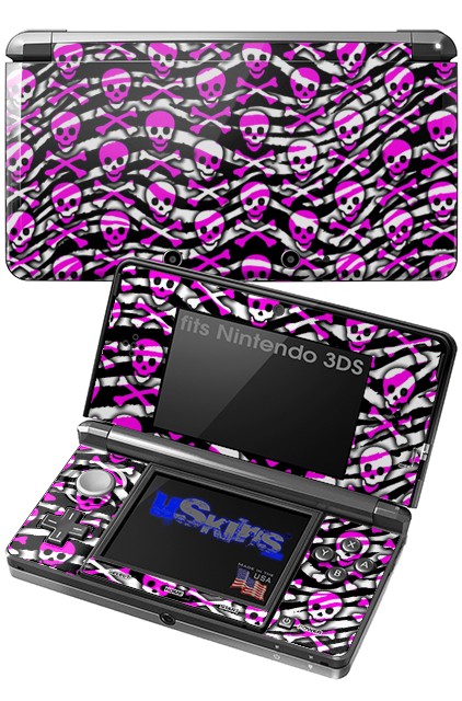 Zebra Pink Skulls - Decal Style Skin fits Nintendo 3DS (3DS SOLD SEPARATELY)