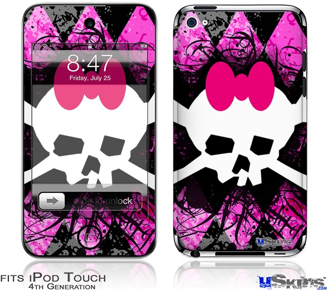 iPod Touch 4G Decal Style Vinyl Skin - Pink Diamond Skull