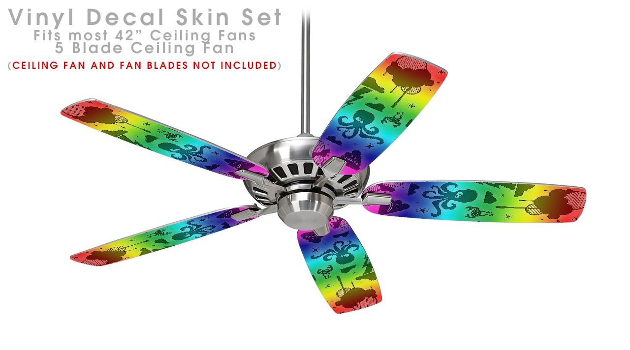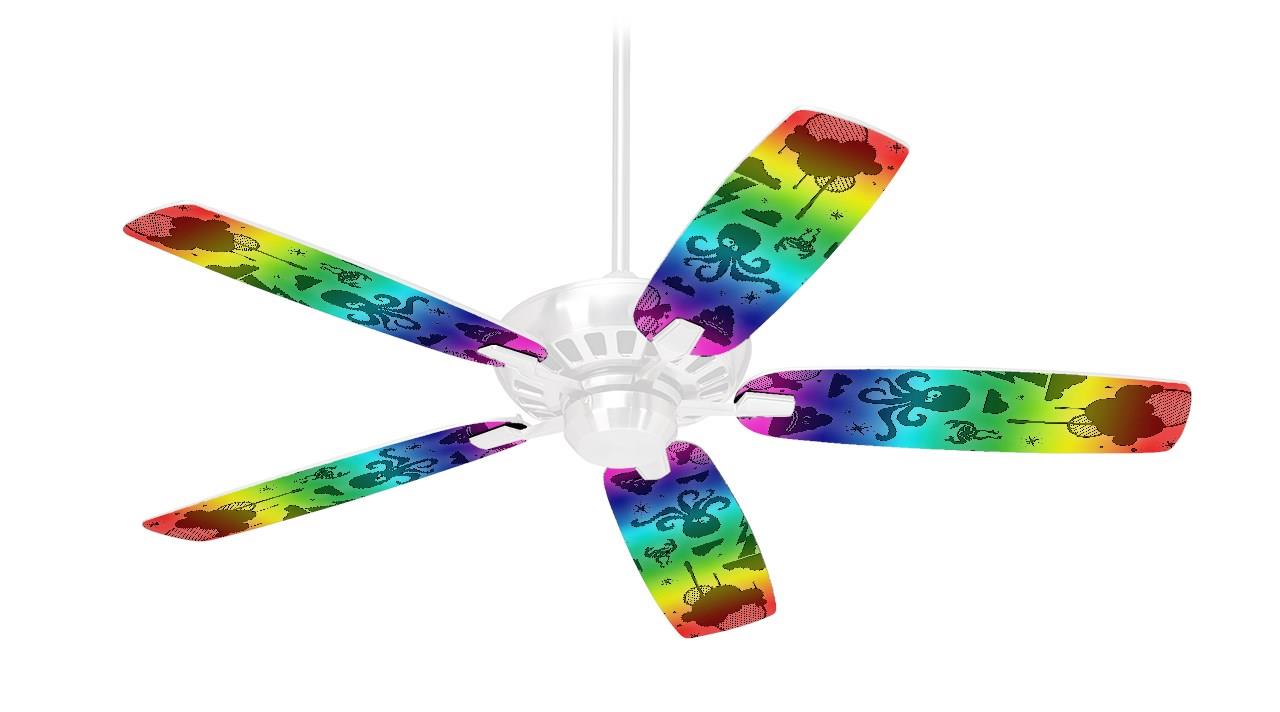 Cute Rainbow Monsters - Ceiling Fan Skin Kit fits most 42 inch fans (FAN and BLADES SOLD SEPARATELY)