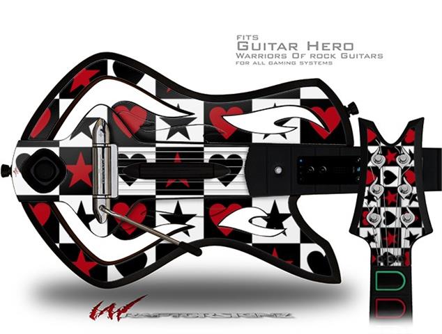 Hearts and Stars Red Decal Style Skin - fits Warriors Of Rock Guitar Hero Guitar (GUITAR NOT INCLUDED)