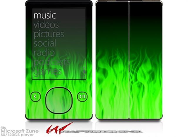Fire Flames Green - Decal Style skin fits Zune 80/120GB (ZUNE SOLD SEPARATELY)