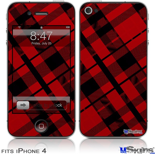 iPhone 4 Decal Style Vinyl Skin - Red Plaid (DOES NOT fit newer iPhone 4S)