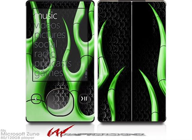 Metal Flames Green - Decal Style skin fits Zune 80/120GB (ZUNE SOLD SEPARATELY)