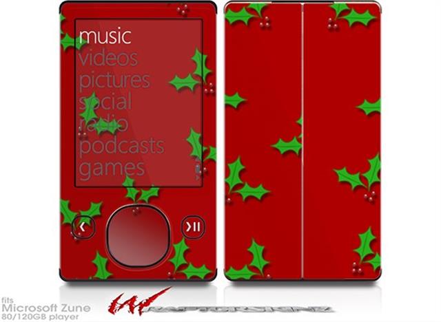 Holly Leaves on Red - Decal Style skin fits Zune 80/120GB (ZUNE SOLD SEPARATELY)