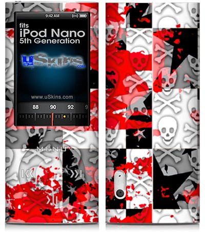 iPod Nano 5G Skin - Checker Skull Splatter Red