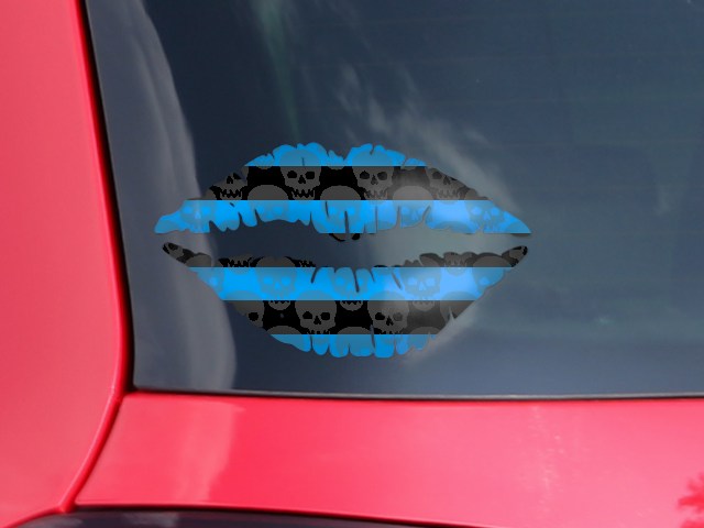 Lips Decal 9x5.5 Skull Stripes Blue