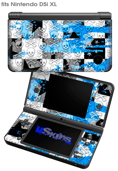 Checker Skull Splatter Blue - Decal Style Skin fits Nintendo DSi XL (DSi SOLD SEPARATELY)
