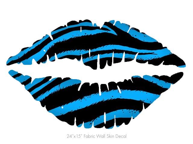 Zebra Blue - Kissing Lips Fabric Wall Skin Decal measures 24x15 inches