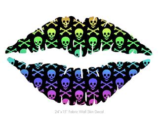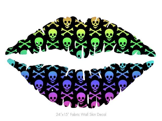 Skull and Crossbones Rainbow - Kissing Lips Fabric Wall Skin Decal measures 24x15 inches