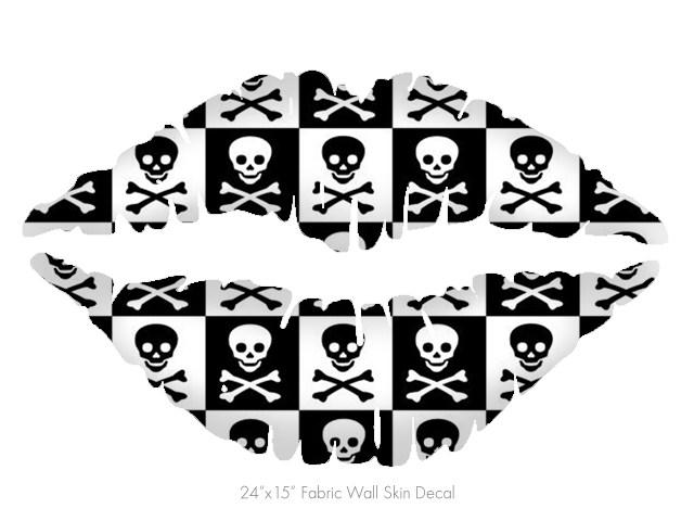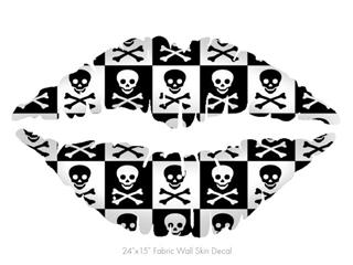 Skull Checkerboard - Kissing Lips Fabric Wall Skin Decal measures 24x15 inches
