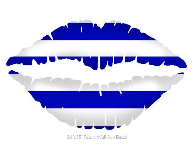 Psycho Stripes Blue and White - Kissing Lips Fabric Wall Skin Decal measures 24x15 inches