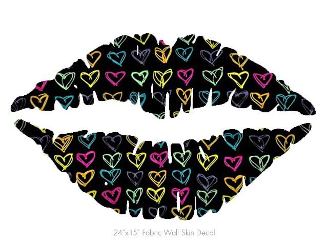 Kearas Hearts Black - Kissing Lips Fabric Wall Skin Decal measures 24x15 inches