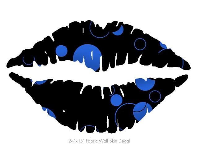 Lots of Dots Blue on Black - Kissing Lips Fabric Wall Skin Decal measures 24x15 inches