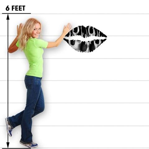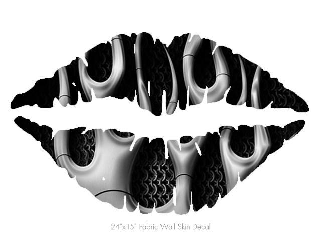 Metal Flames Chrome - Kissing Lips Fabric Wall Skin Decal measures 24x15 inches