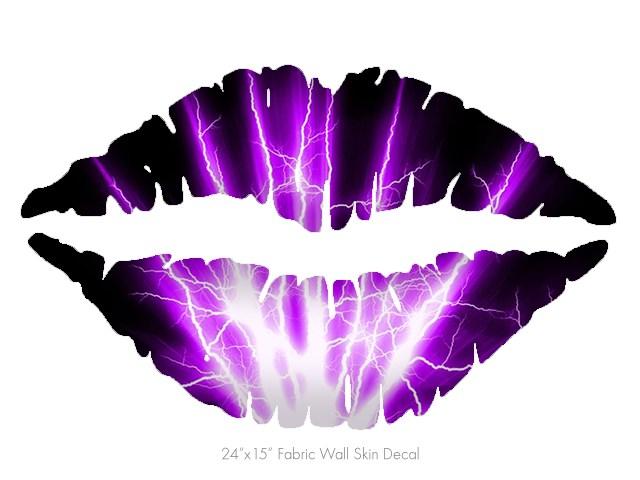 Lightning Purple - Kissing Lips Fabric Wall Skin Decal measures 24x15 inches