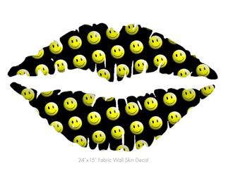 Smileys on Black - Kissing Lips Fabric Wall Skin Decal measures 24x15 inches